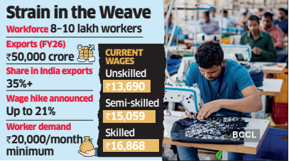The unrest has started impacting future orders from the Noida hub, which employs between 800,000 to one million workers and exported garments worth about ₹50,000 crore in FY26, accounting for over one-third of India’s total apparel exports.